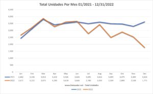 Bienes Raíces PR; Total de Unidades De Compraventas Año 2021 y 2022